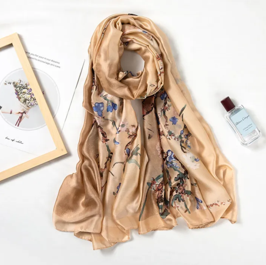 Rustic Romance Beige Silk Scarf - Pakistan's #1 Online Hijab Store